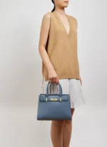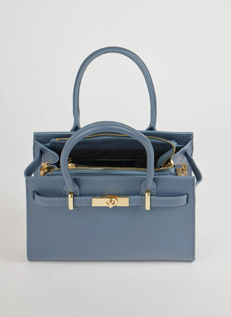 Die Grace Bag verkörpert raffinierte Schlichtheit. Ihr klares, elegantes Design wird durch goldene Accessoires veredelt, die ihre Eleganz unterstreichen. Mit ihrer klassischen Form und den komfortablen Henkeln vereint diese Tasche Funktionalität und Stil.